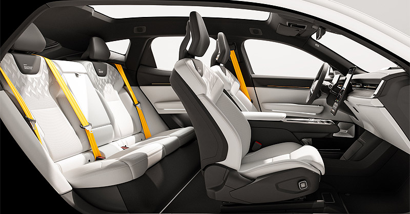 Minimalismo escandinavo y materiales cuidados. El ambiente de la iluminación interior en blanco o en swedish gold. Confort a la medida de cada persona. El espacio interior del Polestar 3 convierte cada conducción en un viaje único